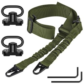 Specification:Sling Material: Nylon webbing Swivels and Clips Material: AluminumLength: Up to 62.2Color: GreenPackaging Include: 1 x 2 Point Sling2 x Sling Push-button Swivel2 x Sling Swivels Mount1 x Wrench..
