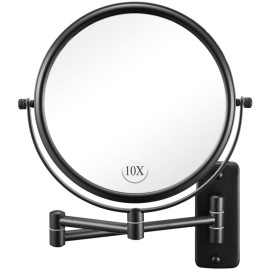 Wall Mounted Makeup Mirror - 1X/10X Magnifying Mirror for Wall, 8 Inch Double Sided 360 Swivel Extendable Bathroom Mirror for Shaving, Black