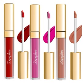Depuplum 3Pc Matte Liquid Lipsticks for Women, Red Lipstick Nude Lisptick Pink Lipstick, Cruelty Free Long Lasting Lip Makeup (DM05+DM06+DM10)