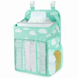 Maliton Hanging Diaper Caddy Organizer - Diaper Stacker Organizer for Changing Table, Crib, Playard & Nursery Organization Diaper Holder Baby Shower Gifts for Newborn (Blue-Green)