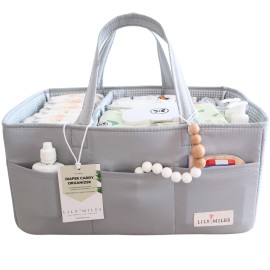 Lily Miles Diaper Caddy Organizer with 8 Pockets, Wipeable Baby Caddy Basket for Diapers and Wipes, Baby Registry Favorites, Nursery Tote Bag for Changing Table or Car (Heather Grey, Large)