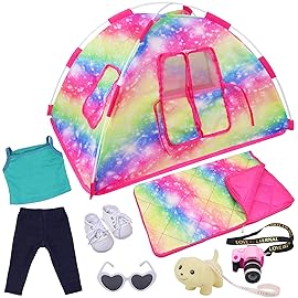 - Package Includes: 1 suitcase, 1 clothes, 1 sunglasses, 1 camera, 1 computer, 1 iphone, 1 ipad, 1 travel pillow, 1 passport, 2 air tickets, 10 cashes, 1 blindfold, 1 creditcard (NOT INCLUDED DOLLS AND SHOES) | Portable Travel Luggage : The handle of Carry on Luggage goes up & down just as a real one. It measures 10.2 x 3.54 x 2.36 inches, all of the accesories are easily stored inside the suitcase. Kids also can use it to storage other little playtoys. | Ideal Gift: gift for your children, your friends and yourself. Perfect as a Xmas gift, Birthday gift, New Year gift, party favor and other holiday gift.(Fit 18 Inch Girl Doll , Our Generation Doll, My Life Doll ) | Design Concept:Featured the popular style, each doll accessory has a unique style to stimulate your child's imagination, practice and creativity. When children play, they learn to communicate and cooperate with each other in a friendly manner. | Service Guarantee:We will pay attention to your purchase experience. If you have any questions or suggestions about the products you receive, please contact us in time and we will solve the problem for you.