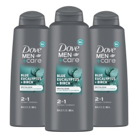 DOVE MEN + CARE 2 in 1 Shampoo Conditioner Eucalyptus + Birch 3 Count For Healthy-Looking Hair Naturally Derived Plant Based Cleansers 20.4 oz