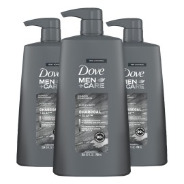 DOVE MEN + CARE Shampoo Charcoal + Clay 3 Count For Healthy-Looking Hair Naturally Derived Plant Based Cleansers 25.4 oz