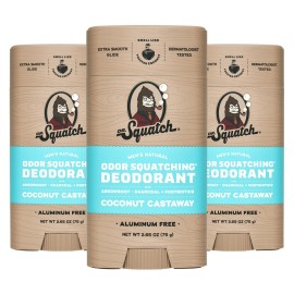 Dr. Squatch Natural Deodorant for Men - Odor-Squatching Aluminum Free - Coconut Castaway (2.65 oz, 3-Pack)