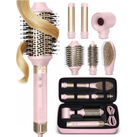ELLA BELLA 6 in 1 Professional Hot Air Styler Powerful Hair Dryer & Straightener Set Styling Without Heat Damage Fast Drying Curling Volumizing Straightening Protective Travel Case (Pink)