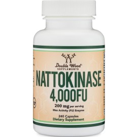 Nattokinase Supplement 4,000 FU Servings, 240 Capsules (Derived from Japanese Natto) Systemic Enzymes for Cardiovascular and Circulatory Support by Double Wood