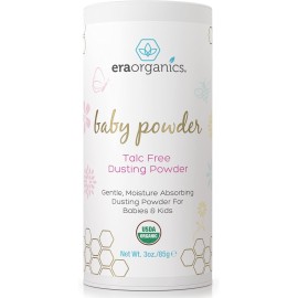Era Organics Talc-Free Organic Baby Powder - USDA Organic Dusting Powder with Arrowroot, Calendula and Cornstarch for Newborns, Babies or Toddlers - Soothing, Fragrance Free, Made in USA (3oz/85g)
