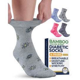 Falari Women Diabetic Socks Diabetes Edema and Circulatory Loose Fitting Cotton Crew Socks - 6 Pairs (Crew Height - Black/Grey/Navy/White, 9-11)