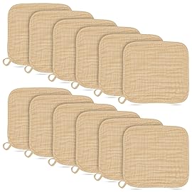 Muslin Baby Washcloths, 12x12 Inch, 12 Pack, Brown..