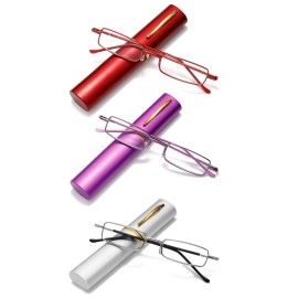 FEIVSN 3-Pack Rimless Reading Glasses For Women, Lightweight Spring Hinge Readers, Classic Elegant Artistic Eyeglasses UV 400 (Red 1.5 Etc)