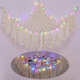 FIOBEE Stuffed Animals Net or Hammock with LED Light, Toy Hammock Hanging Stuffed Animals Storage Organizer Holder Room Dcor with Tassels for Nursery Play Room Kids Bedroom..