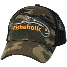 Fishoholic Snapback Baseball Fishing Hat - Mesh Trucker Fishing Gift for Dad Father