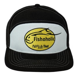 Fishoholic Snapback Baseball Fishing Hat - Mesh Trucker Fishing Gift for Dad Father Blackyellow