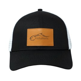 Fishoholic Snapback Baseball Fishing Hat - Mesh Trucker Fishing Gift for Dad Father Blackwhite