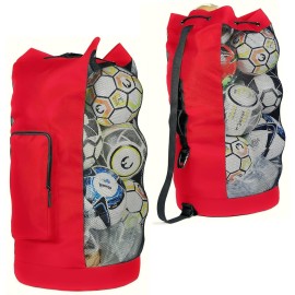 Fitdom Heavy Duty XL Soccer Mesh Equipment Ball Bag w/Adjustable Shoulder Strap Design for Coach. with an Over-Sized Front Pocket for Sporting Accessories. Best for All Outdoor & Water Gears