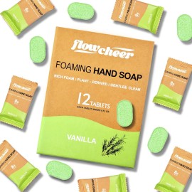 flowcheer Foaming Hand Soap Refill Tablets, 12 Pack Makes 108 fl oz (12 x 9 fl oz Bottles) Vanilla Fragrance,Fresh & Clean Handwash, No Plastic Bottle