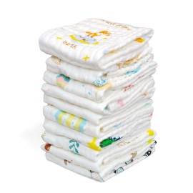 FOOK FISH Muslin Burp Cloths Large 20\'\'x10\'\' 10 Packs for Baby Spit Up Cloths for Newborn,Absorbent,Soft,Large,6 Layers Baby Burp Rags,Unisex,for Boys and Girls (Animals)