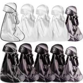 ForceWave 10 Pieces Silky Durags Long Tail for Women Men Satin Durag 360 Wave, Dorag, 10 Pieces