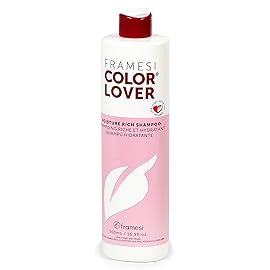 Product DescriptionFramesi Color Lover Moisture Rich Shampoo is an ultra-hydrating shampoo for color treated hair that restores vitality, radiance, and instantly revives dry hair while maintaining your color 95% longer. It is comprised of an advanced blend of quinoa, aloe vera, vitamins, and shea butter for rich moisture. Weightless and will not bu..