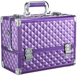 FRENESSA Makeup Train Case Makeup Case 12.6 Inch Large Cosmetic Box Organizer Travel Storage Professional Make Up Train Carrying Case with 6 Trays Locking Shoulder Strap Hard Vanity Storage Purple..
