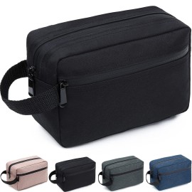 Travel Toiletry Bag for Women and Men, Water-resistant Shaving Bag for Toiletries Accessories, Foldable Storage Bags with Divider and Handle for Cosmetics Toiletries Brushes Tools (Black)