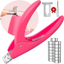 Pink Adjustable Nail Clippers with Magnets Sizers for Acrylic Nails, Artificial Fake Nail False Nail Tip Cutter Trimmer Manicure Pedicure Sharp Blade Clip Tool For Salon Home Art Beauty