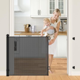 Retractable Baby Gates Extra Wide, PRObebi Retractable Dog Gate Extends to 55 Wide 34 Tall, Dog Gates for The House, Mesh Baby Gate for Staris, Hallways, Doorways, Outdoor & Indoor (Black)