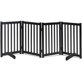LZRS Freestanding Extra Wide Dog Gate 30 inch Tall - 4 Panels Solid Wooden Pet Gate for Doorways, Stairs, Hallways,Kitchens& Long Areas, Expandable & Foldable with Support Feet,Indoor Use,Black