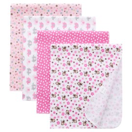 Gina Era Flannel Receiving Blankets, Baby Swaddle Blankets 100% Cotton 4 Pcs One Size 30 X 30 Inch for Baby Boy or Baby Girl (Style4)