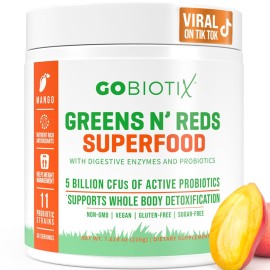 GOBIOTIX Greens Powder - Superfood with Greens and Reds - Probiotic Supplement - Digestive Enzymes and Beet Root Powder - Organic Whole Foods Dietary Supplement (Mango, 1 Pack)