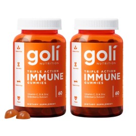 Goli Triple Action Immune Gummies with Vitamin C, D, Zinc - Elderberry Extract, Echinacea, Turmeric, Ginger - Vegan, Non-GMO, Gluten-Free - 120 Count (Pack of 2)