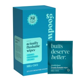 goodwipes Flushable Wipes - Individually Wrapped Butt Wipe for On-the-Go Adults - Portable Mini Wipes - Travel Essentials - Sewer & Septic Safe - Shea-Coco, 32 Count (1 Pack)