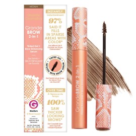 Grande Cosmetics GrandeBROW 2-in-1 Tinted Brow Gel + Brow Enhancing Serum for Thicker & Darker-Looking Eyebrows, Shape & Fill Brows, with Castor Oil & Mini Fibers - Light, Full Size (0.12 fl oz)