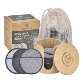 Greenzla Reusable Makeup Remover Pads, Washable Bamboo Cotton Rounds with Mesh Laundry Bag, Travel Pouch, Pad Holder - Reusable Cotton Rounds for All Skin Types - Perfect for Face Care, 30 Pack