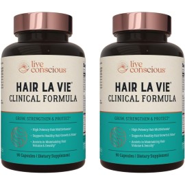 Hair La Vie Clinical Formula by Live Conscious is a high-potency hair health multivitamin formulated with immunity-supporting vitamins, nutrients, and botanicals that promote healthy hair growth.* This comprehensive blend helps protect hair at the scalp, root, and strand levels to achieve gorgeous volume, incredible shine, and rejuvenation.* Nurtur..