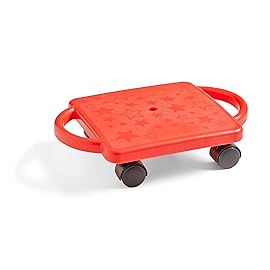 Kids can scoot, glide, and roll around the room while building core strength and coordination on this scooter board. Work on coordination while having fun! Children will have fun building gross motor skills. The hard plastic design is durable, bright and easy-to-clean. It also has plastic wheels that won\'t damage floors. The safety handles keep fi..