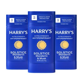 Harrys Extra-Strength Antiperspirant offers 72-hour protection, helping you stay fresh and dry no matter what the day brings. The Solstice scent pampers your senses with invigorating notes reminiscent sunlight, featuring notes of neroli, mandarin, musk, and jasmine, making it a standout among deodorants & antiperspirants. Specially formulated for s..