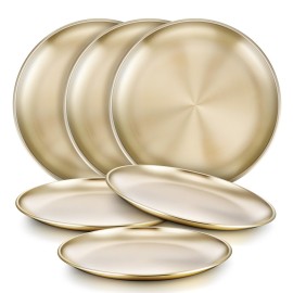 HaWare 6-Piece 18/8 Stainless Steel Plates, Metal 304 Dinner Dishes for Kids Toddler Children, 8 Inch Feeding Serving Camping Plate, Reusable Dinnerware, Unbreakable & Non-toxic, Dishwasher Safe, Gold