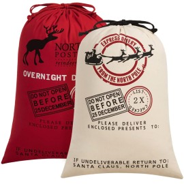 HBlife Canvas Santa Sack, 19.7 X 27.6 Inch Large Santa Bags for Gifts, Personalized Christmas Sacks for Presents with Drawstring, 2 Pack A