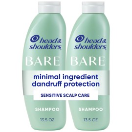 Head & Shoulders Anti-Dandruff Shampoo, BARE Sensitive Scalp Care Twin Pack, with 1% Pyrithione Zinc, Fragrance-Free, Free of Sulfates, Silicones, Gentle, 13.5 fl oz Each