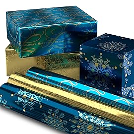 Share more merry! Add joy to the holiday season with stunning foil Christmas wrapping paper! Each roll in this bundle of holiday gift wrap features a gorgeous metallic design: Trendy rose gold with broken branches, shiny silver with evergreen tree forest, classic gold with cascading snowflakes. Perfect for wrapping gorgeous gifts for your kids, gra..
