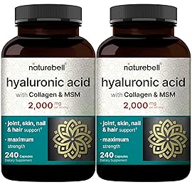 NatureBell 2 Pack Hyaluronic Acid Supplements 2,000 mg | 480 Total Capsules, with MSM & Hydrolyzed Bovine Collagen - 3 in 1 Support for Skin Hydration, Joint Lubrication, Hair, and Eye Health