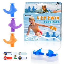 Hearprotek Swimming Ear Plugs, 3 Pairs Soft Waterproof Reusable Earplugs for Swimming Showering Bathing and Other Water Sports Suitable for 6+ Kids(Blue/Orange/Purple)