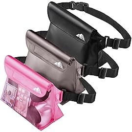 HEETA 3-Pack Waterproof Pouch with Waist Strap, Screen Touchable Dry Bag with Adjustable Belt for Phone Valuables for Kayaking Swimming Snorkeling Boating Fishing Surfing Beach (Black, Grey & Pink)