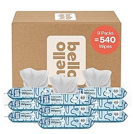 Hello Bello Extra Gentle Unscented Baby Wipes, Plant Based, Made with 99% Water and Aloe for Babies and Kids, 60 Count (Pack of 9) Total 540 Count