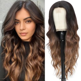 HMHIFI Long Brown Balayage Blonde Wigs for Women 26inch Wavy Curly Wig Natural Looking Middle Part Synthetic Heat Resistant Hair Replacement Wigs for Daily