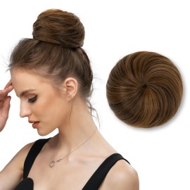 HOTBANANA Sew in Hair Extensions Real Human Hair, 14inch 80g Weft, Chocolate Brown Mixed Caramel Blonde Balayage, Straight Remy Hair, Full Head