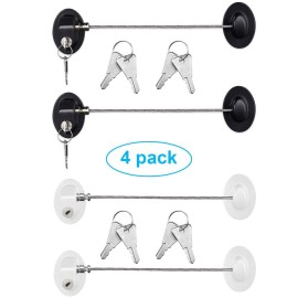 Hotop 4 Pack Cabinet Locks with Keys Mini Fridge Refrigerator Locks for Kids Toddlers Self Adhesive Child and Baby Proofing Safety for Deep Freezer Drawers Doors Latch(White and Black)