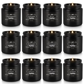 Howemon Christmas Scented Candle Set 12 Pack,Black, Candle for Home Scented, Odor Eliminating, Stress Relief, Long Lasting Soy Wax Gift Set